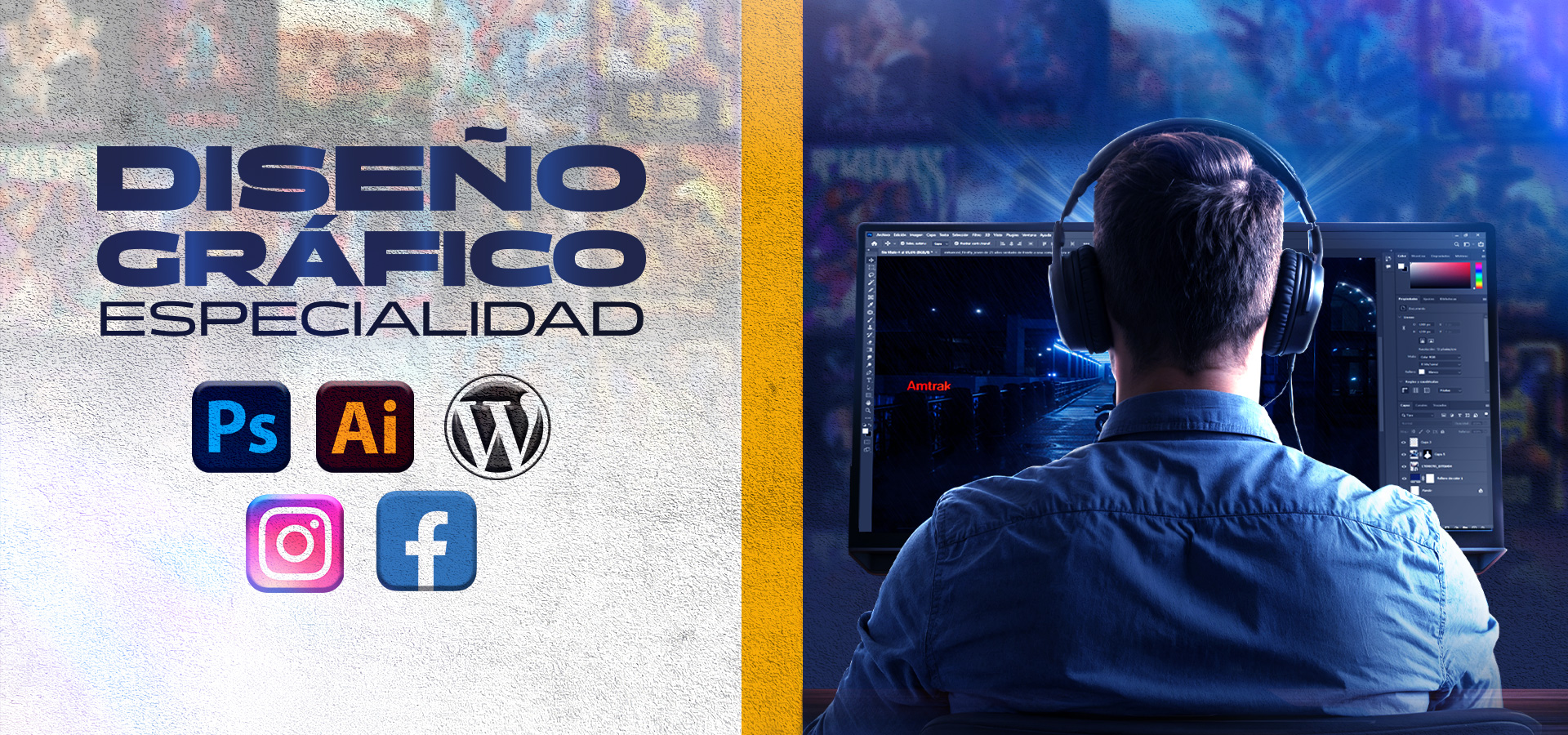 Aprenderás a gestionar cualquier detalle de la producción gráfica, realizarás diseños publicitarios, identidad corporativa, con Adobe Ilustrador; conseguirás sacarle todo el partido posible a las imágenes mediante su tratamiento digital en Adobe Photoshop, podrás realizar cualquier diseño editorial gracias a Adobe InDesign y aprenderás técnicas para la generación de nuevas ideas gracias a la Creatividad Aplicada al Diseño.